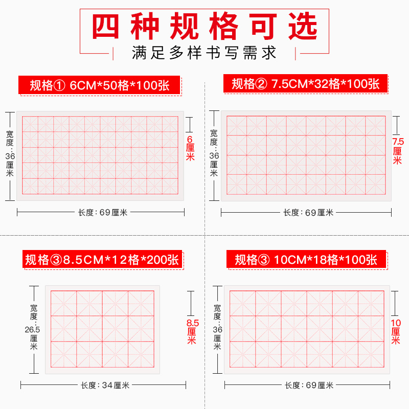 米字格宣纸书法专用纸12格书法本作品纸大字纸初学者毛笔练字田字格纸米格大楷纸练习纸半生熟生宣中楷带格子