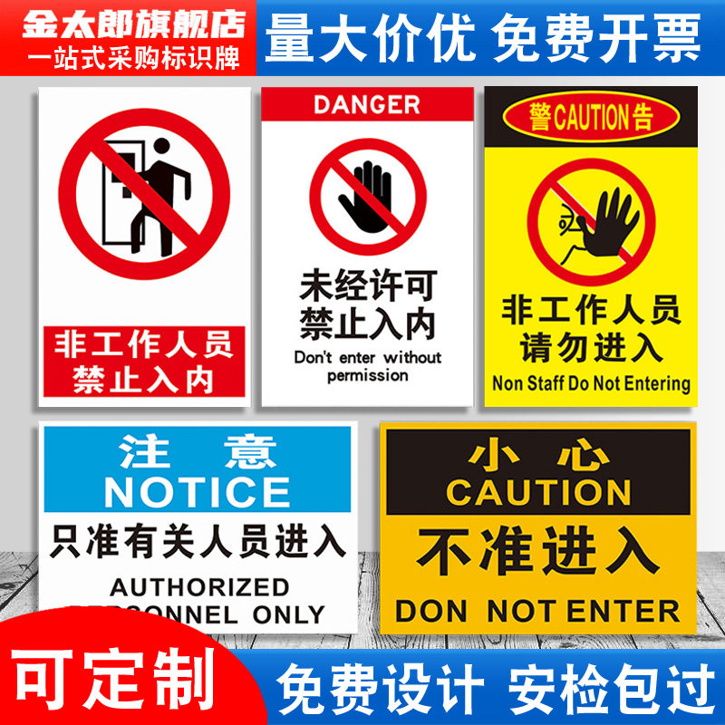 非工作人员禁止入内标识牌非生产车间外来员工未经许可不得进入闲人免进非请勿进安全警示标志贴纸提示牌定制