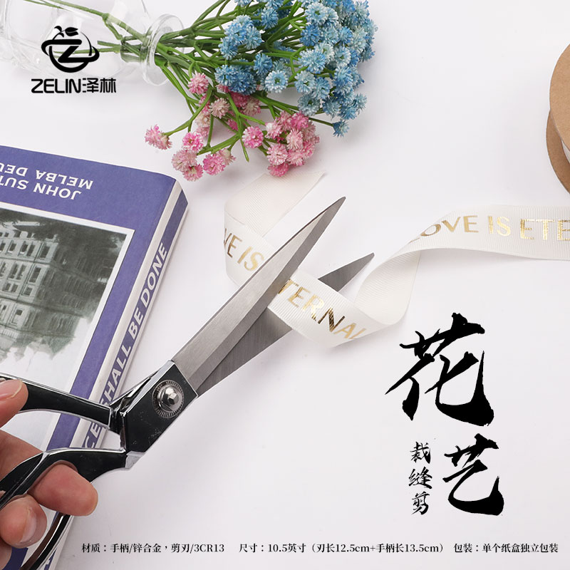 泽林新款花艺剪刀高档金属剪刀丝带包装纸裁剪刀花店工具用品