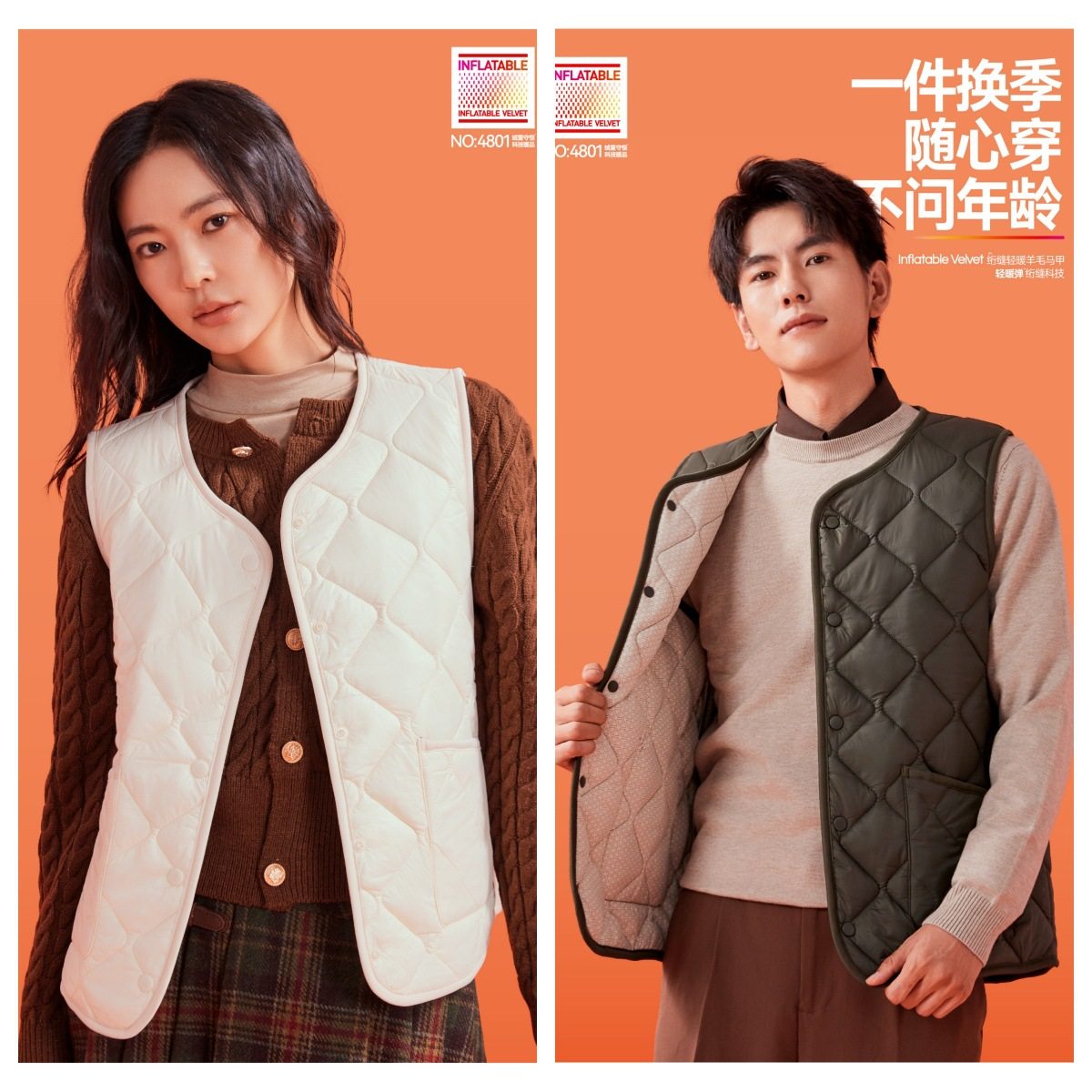 推荐理由:秋冬男女同款羊毛马甲加绒保暖坎肩马夹三明治保温夹层单排扣背心