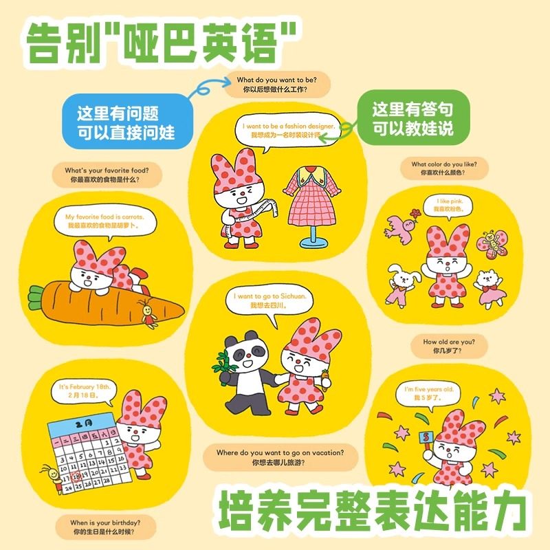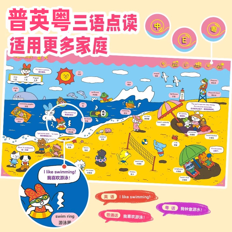 【点读版】帽帽兔英语聊聊大书0-6岁中英粤三语启蒙点读图画书情景对话句子跟读示范30+生活场景经典英文童谣幼儿园宝宝早教故事