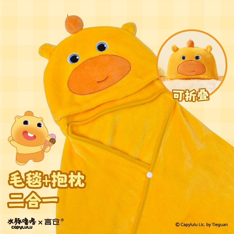言仓水豚噜噜毛毯帽子披肩午休休闲毯带扣正版可爱生日礼物