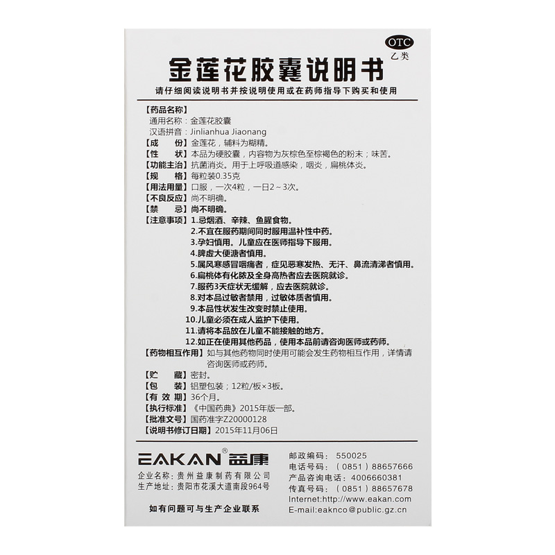 推荐理由:益康金莲花胶囊抗菌消炎支气管炎扁桃体炎红肿咽炎软胶囊上呼吸道