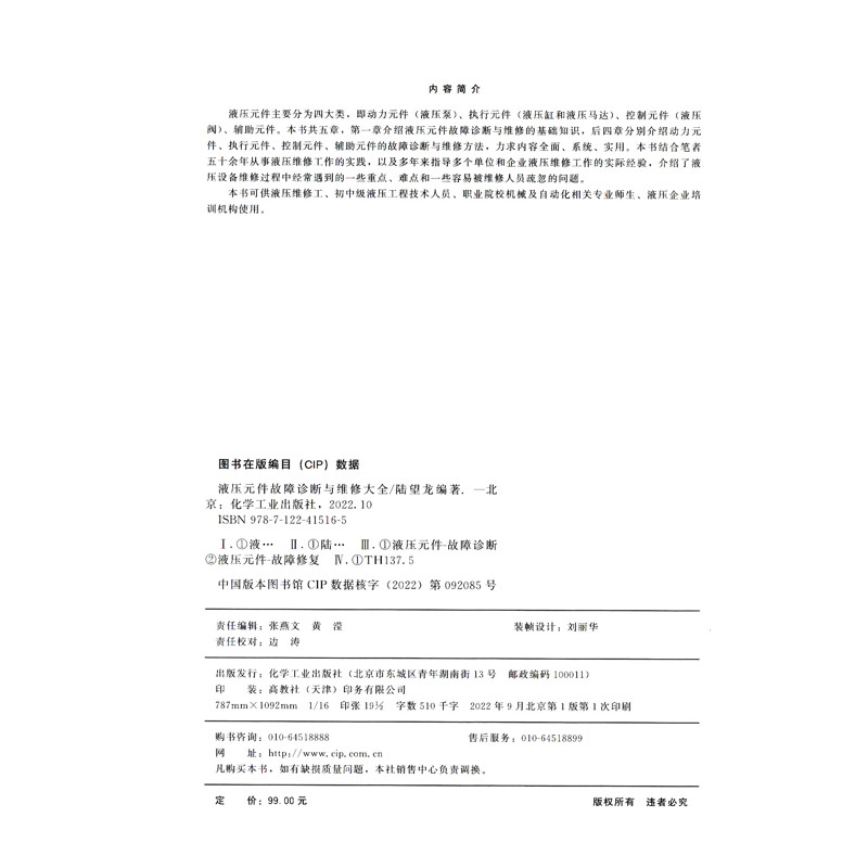 推荐理由:液压元件故障诊断与维修大全陆望龙编著工业技术其它化学工业出版社凤凰新华书店旗舰店