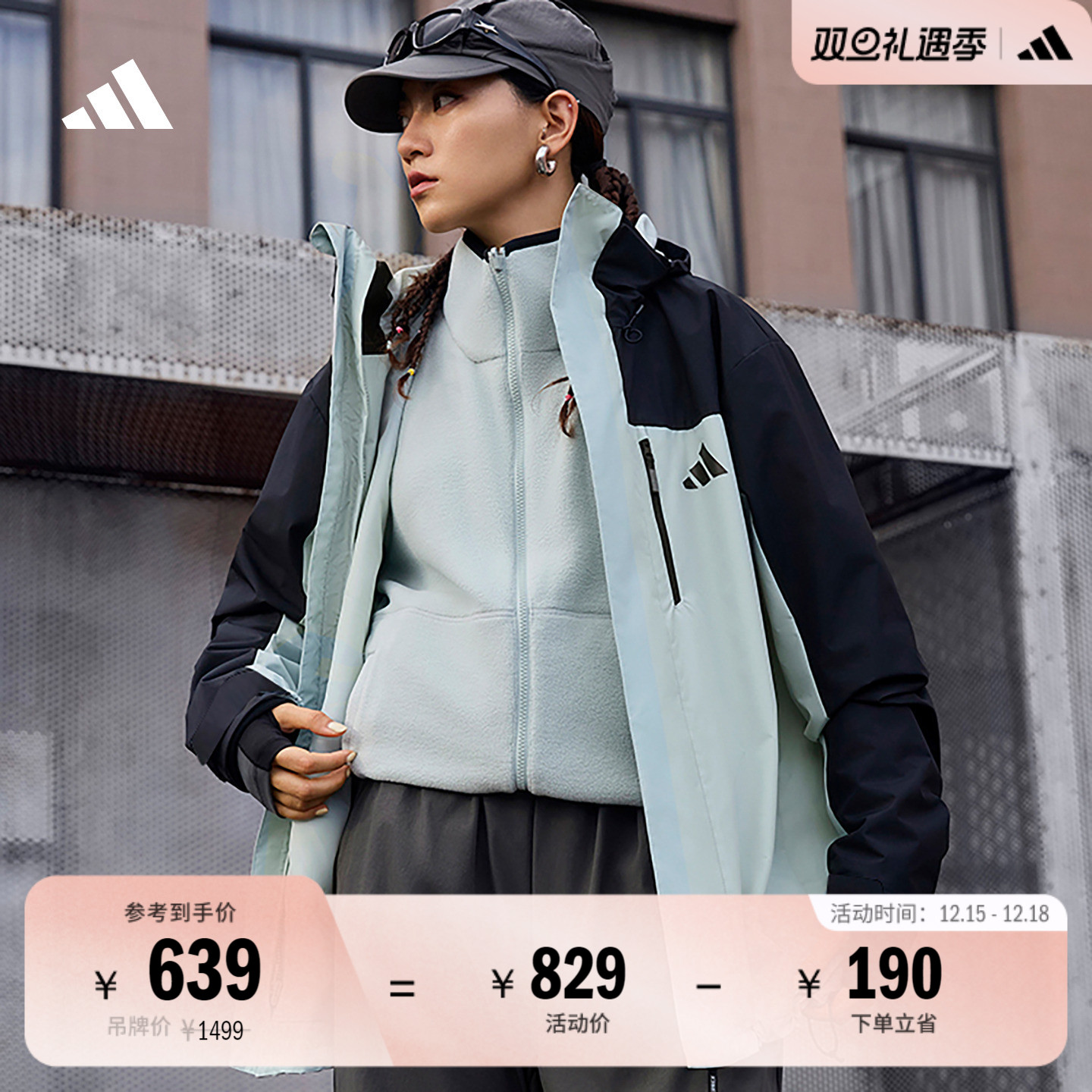 拒水加绒内胆三合一连帽外套男女秋季adidas阿迪达斯官方轻运动