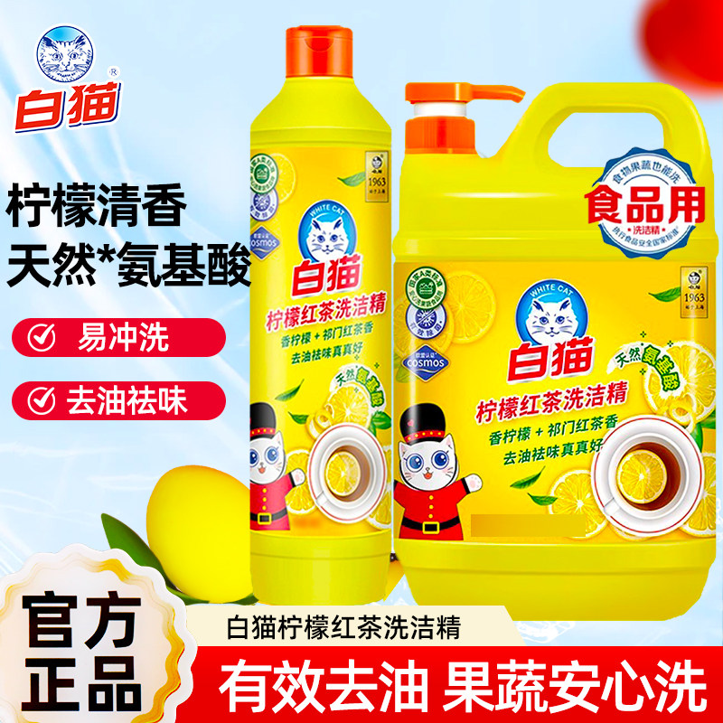 白猫洗洁精小瓶装家用洗涤剂厨房洗碗液餐具去油污柠檬红茶香型