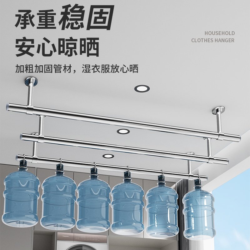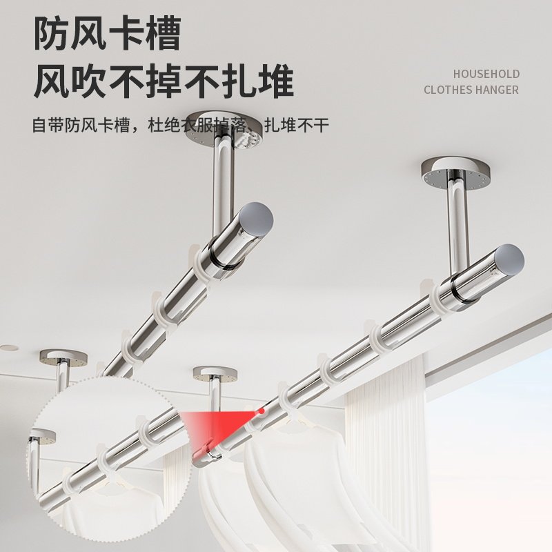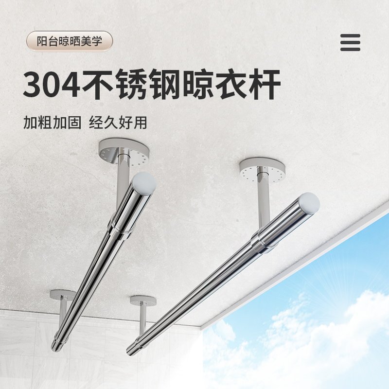 304晾衣杆32mm圆管阳台顶装晾衣架单杆固定式凉衣服晒衣架不锈钢