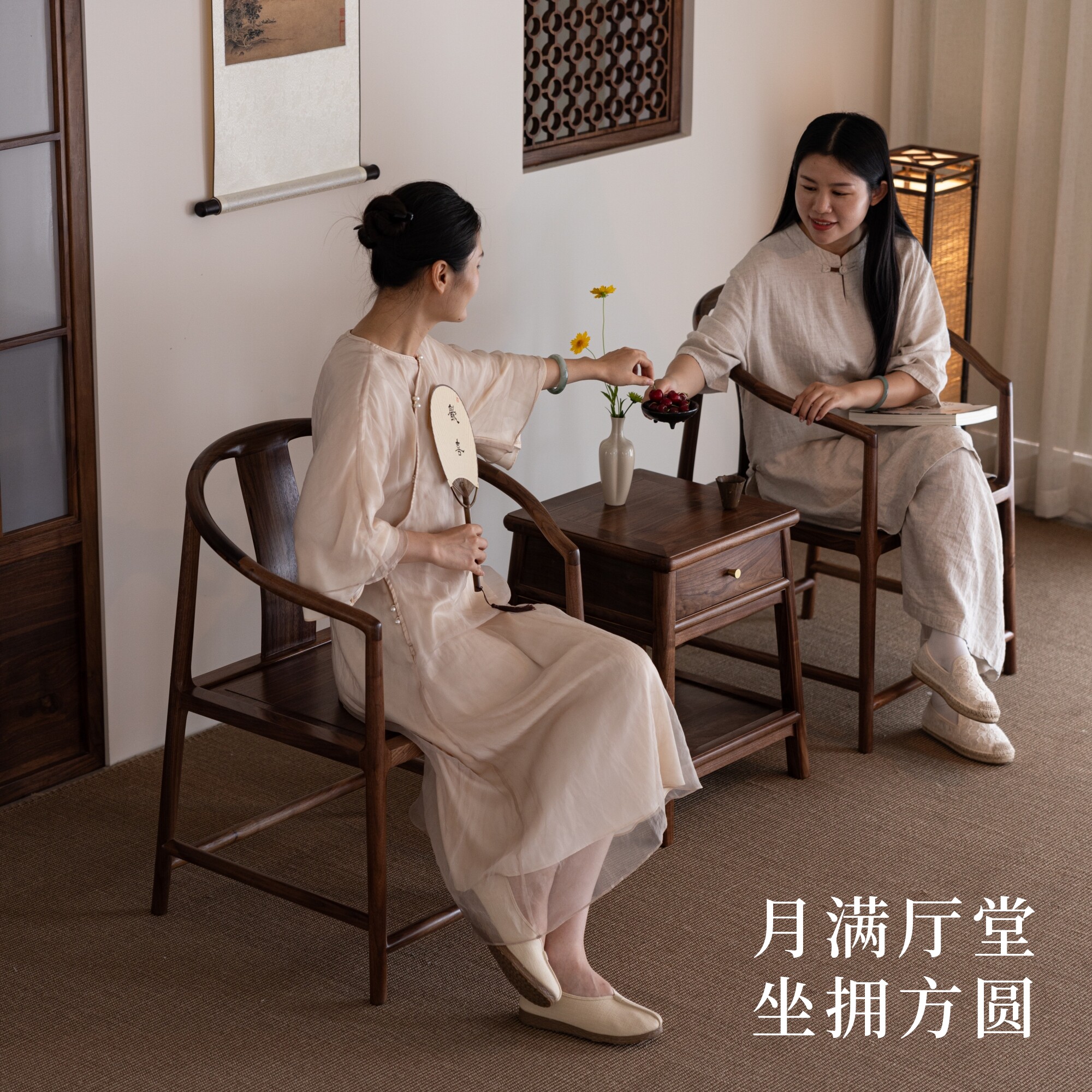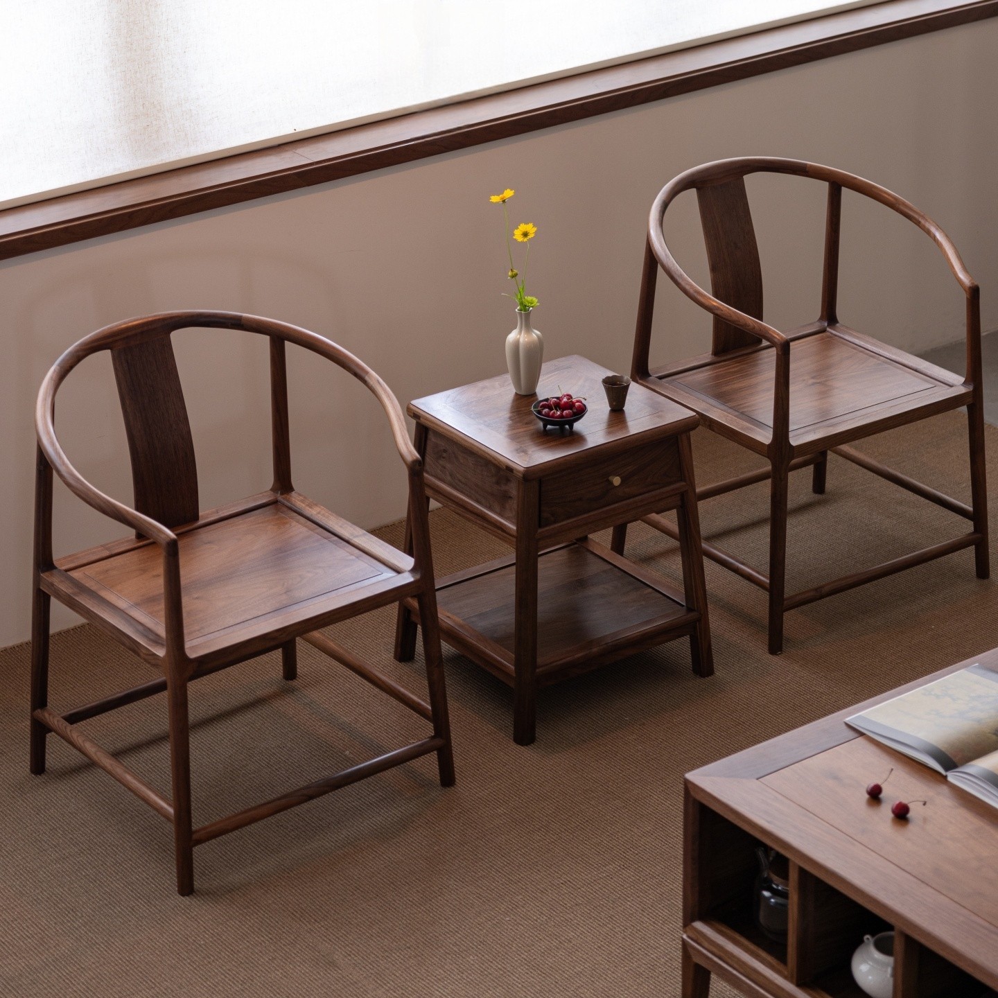 推荐理由:空器木作新中式黑胡桃木实木圈椅围椅太师椅茶椅禅椅主人椅三件套