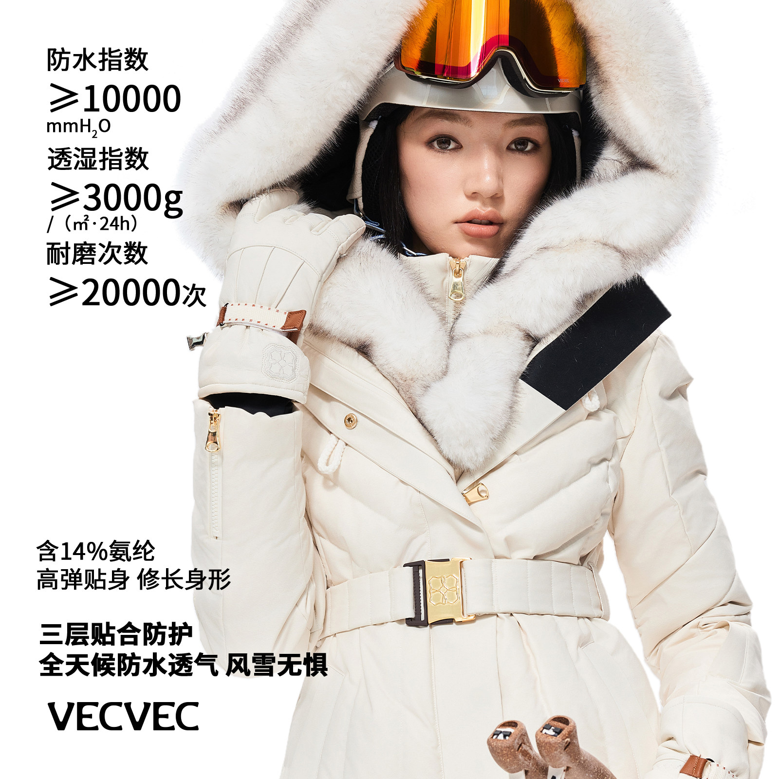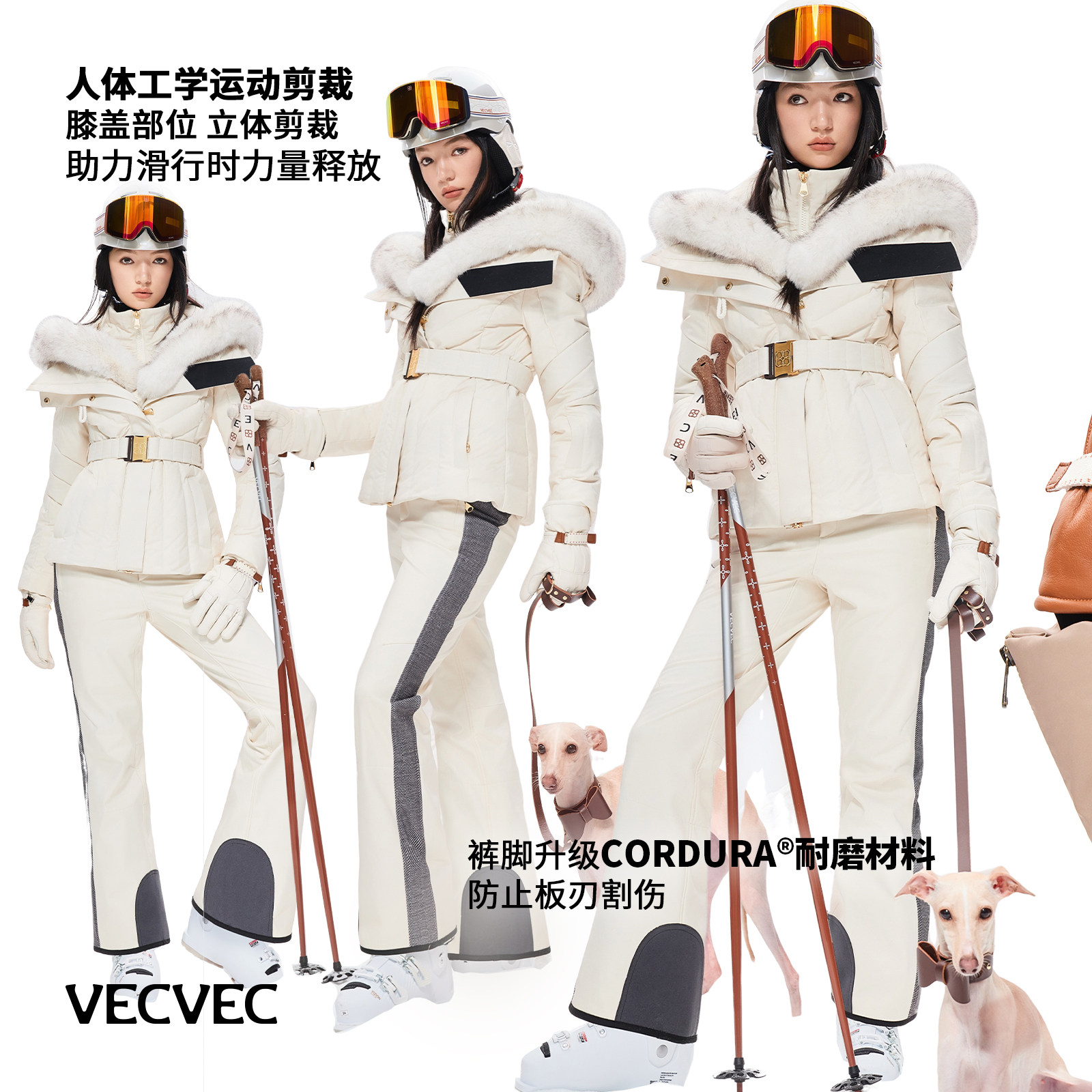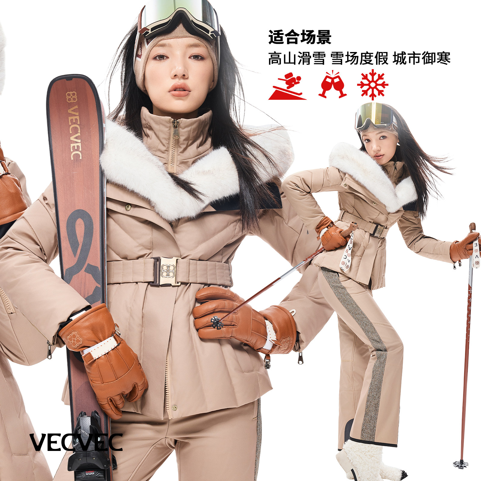 VECVEC鹅绒滑雪衣裤套装老钱贵妇风保暖冬季羽绒服户外休闲运动女