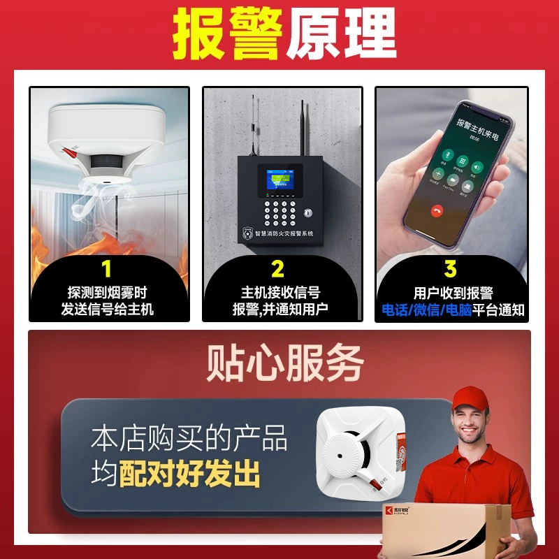 智慧消防火灾报警主机系统无线烟雾感应4G联网智能远程火灾探测器