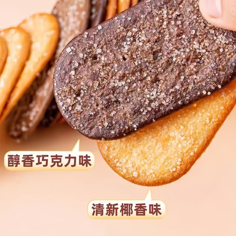 推荐理由:椰奶味薄脆饼干巧克力味整箱散装批糖粒薄饼独立小包装休闲零食发