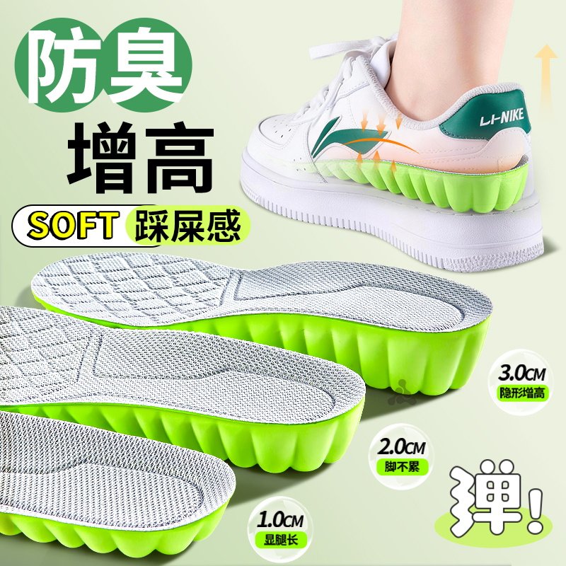 防臭增高鞋垫男款不累脚隐形内增高软底舒适踩屎感女士运动1cm2cm