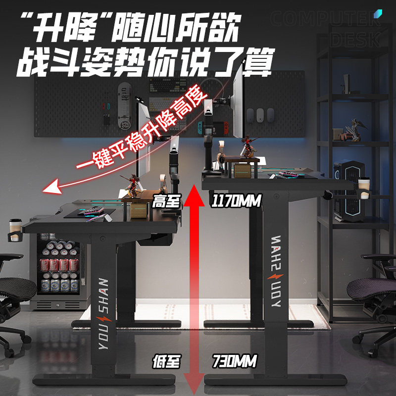电动升降桌智能电脑桌游戏电竞桌卧室家用桌椅套装网红游戏升降桌