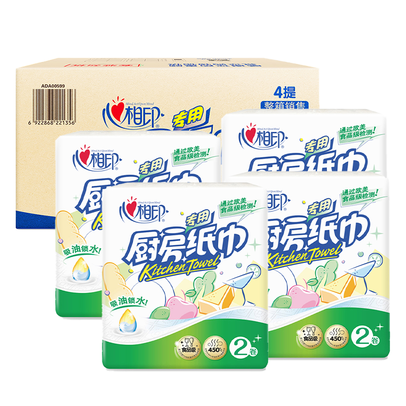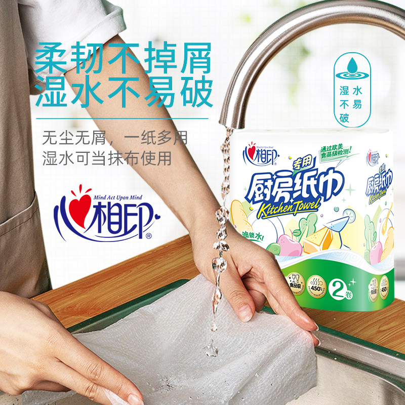 心相印厨房纸巾吸油纸油烟机垫油纸家用实惠装整箱批卷筒纸大卷纸