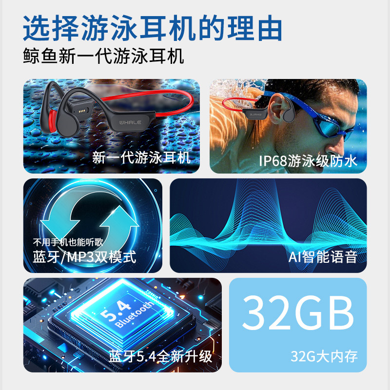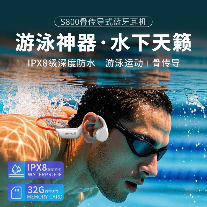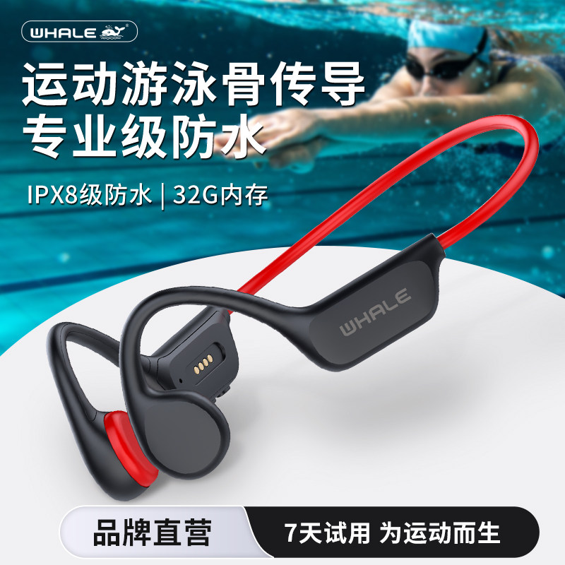 鲸鱼游泳耳机户外运动蓝牙耳机水下MP3防水IPX8骨传导耳机