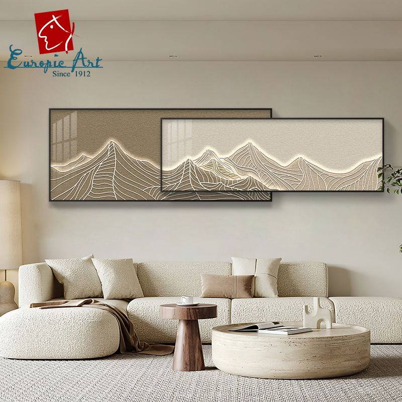 高级感客厅装饰画背有靠山2024年高档抽象线条山脉沙发背景墙挂画
