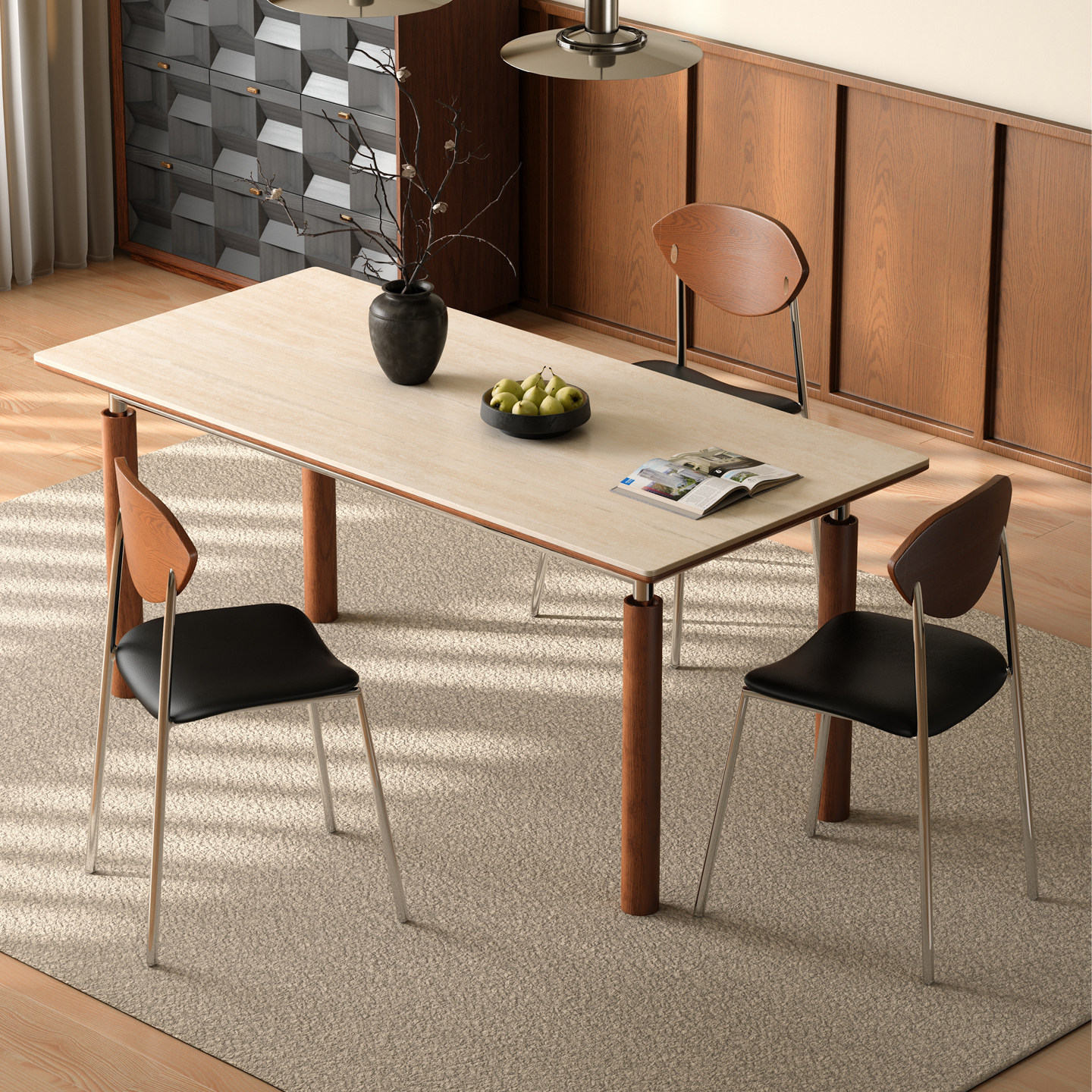 推荐理由:木小咖 实木岩板餐桌小户型复古中古风维亚长方形哑光洞石饭桌