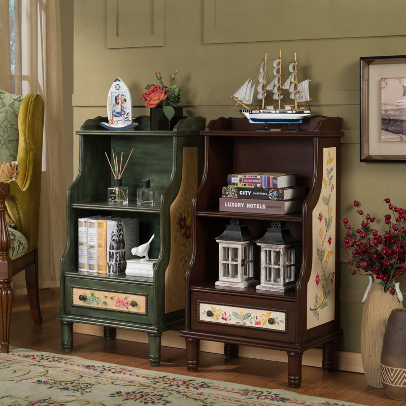 欧式美式单个书柜小书架复古展示柜杂物架田园彩绘家具置物柜2008