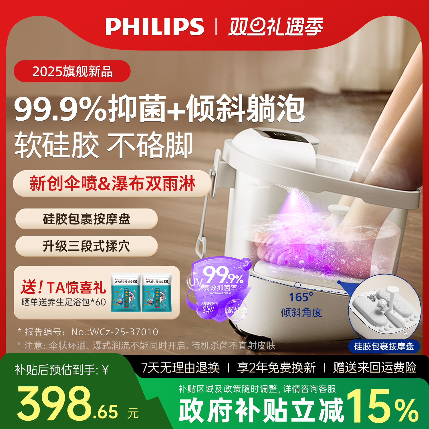 飞利浦小白桶杀菌泡脚桶加热恒温电自动按摩足浴洗脚盆圣诞节礼物