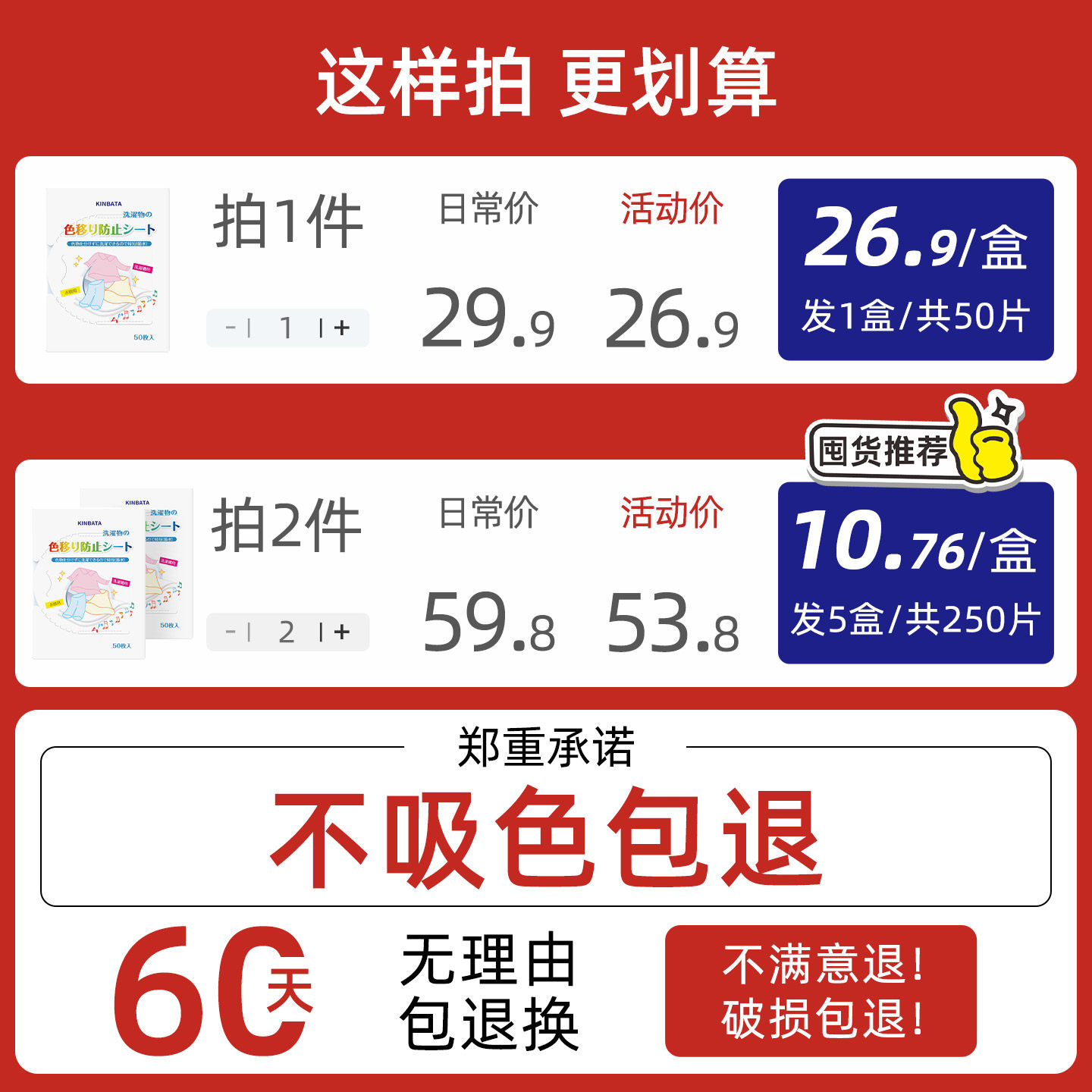 kinbata木幡防串染吸色片洗衣服吸色纸衣物护色母片【拍2发5盒】