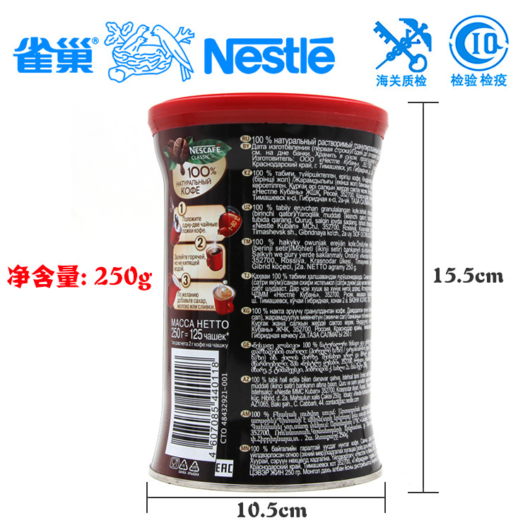 推荐理由:进口俄罗斯雀巢咖啡 醇品速溶纯黑咖啡 无糖特浓香味苦250g铁罐装