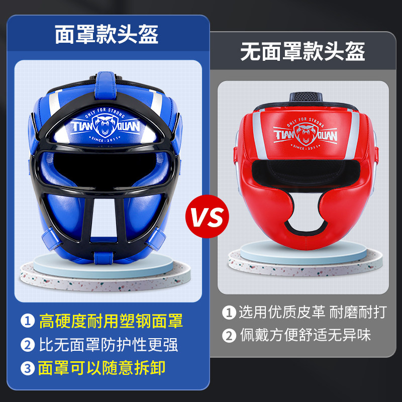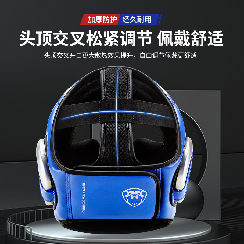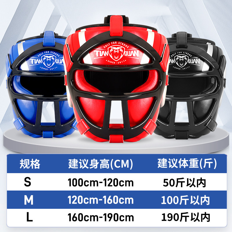 拳击头盔散打护头面罩护头套儿童搏击横梁成人猴脸帽子跆拳道护具