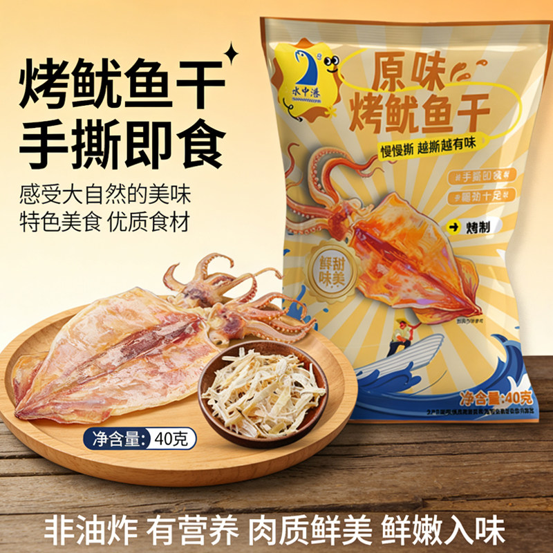推荐理由:水中港原味烤鱿鱼干40克*6包非油炸手撕即食新鲜美味特色美食