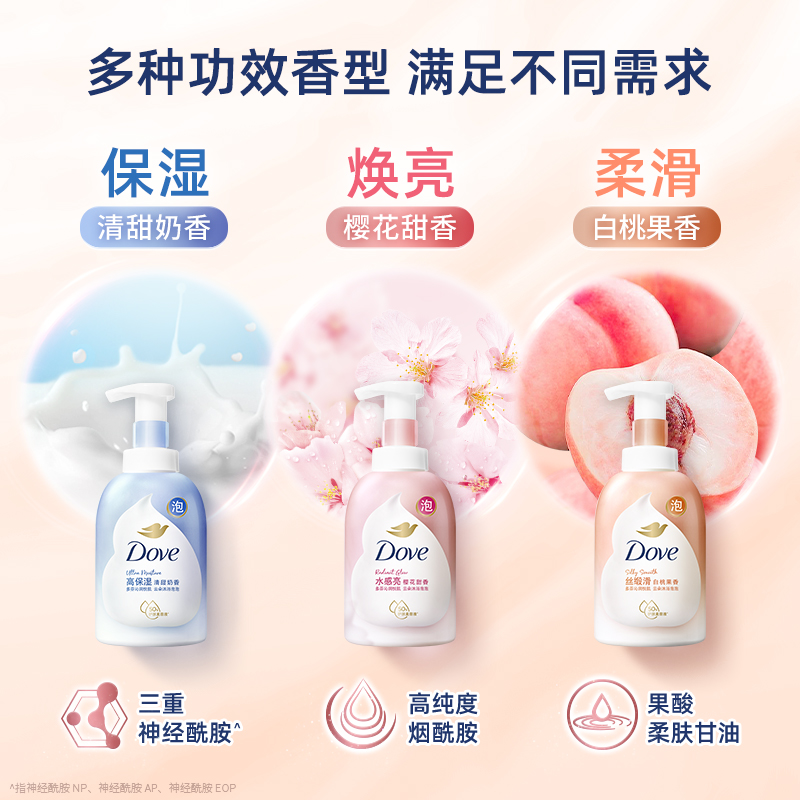 多芬沐浴露泡泡浴奶慕斯持久留香果酸柔滑白桃保湿滋润官方正品