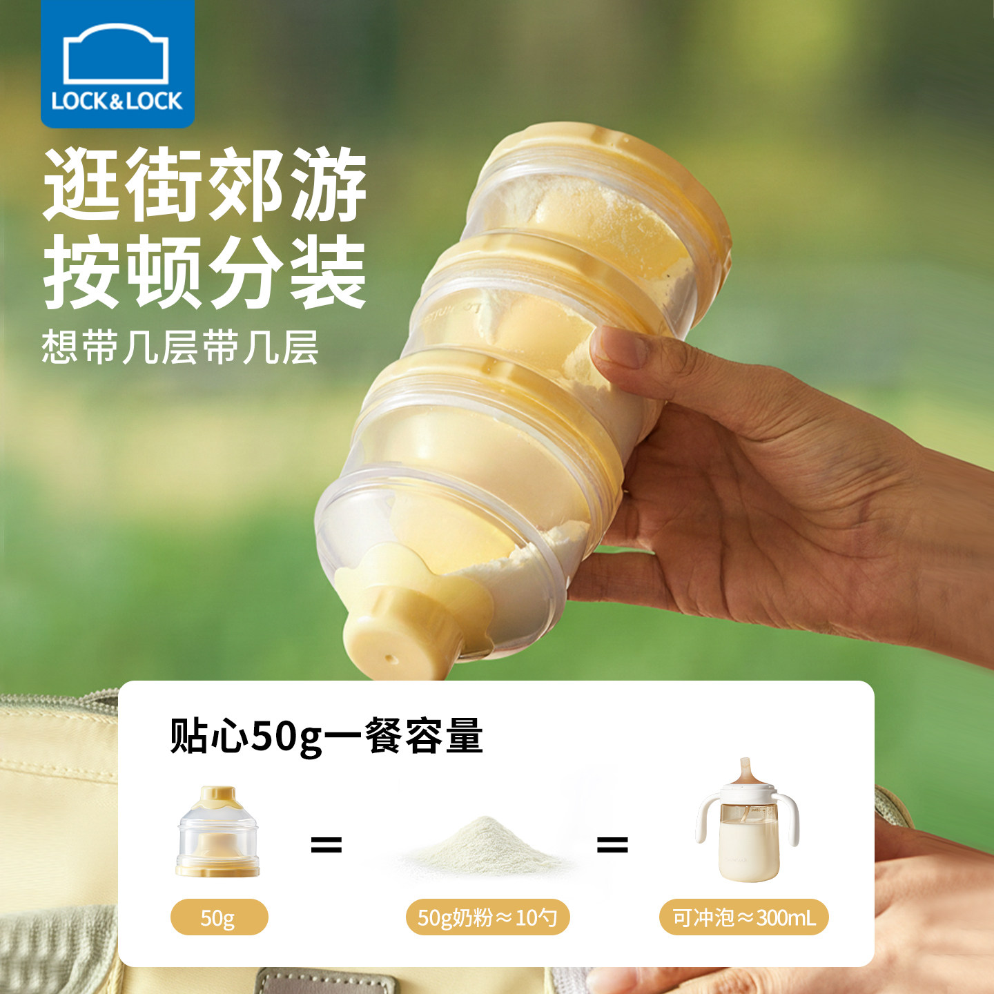 乐扣乐扣奶粉盒便携外出分装盒大容量多层外带盒子宝宝米粉储存罐