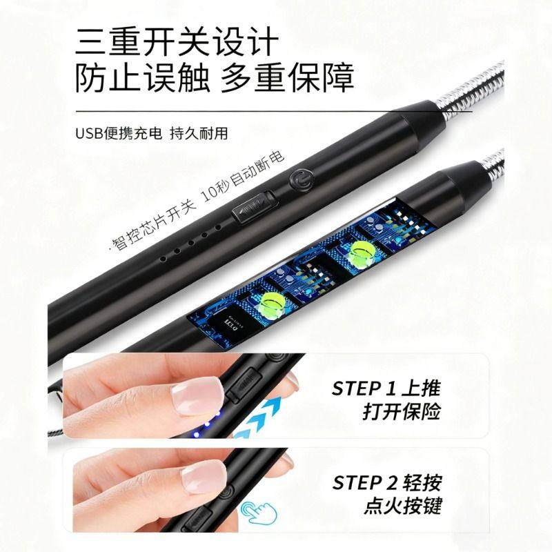 煤气灶脉冲点火器长手柄电子枪燃气灶打火机防风商用充电加长电弧