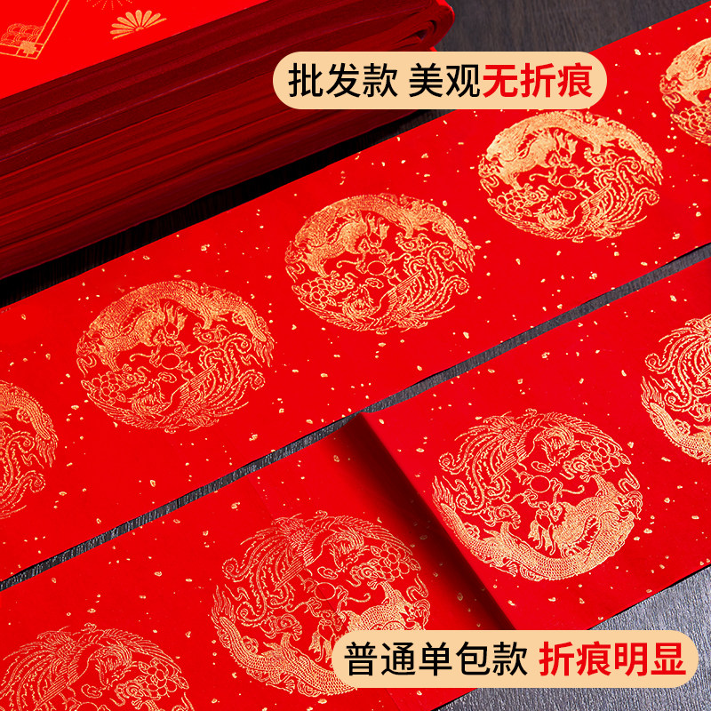 2026年新款万年红对联纸专用自写春联纸空白手写马年春节过年烫金加厚五七言福字斗方洒金大红纸批发书法宣纸