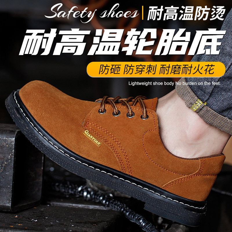 乾源轮胎底劳保鞋男士防砸防防刺实心牛皮电焊工地耐高温工作安全