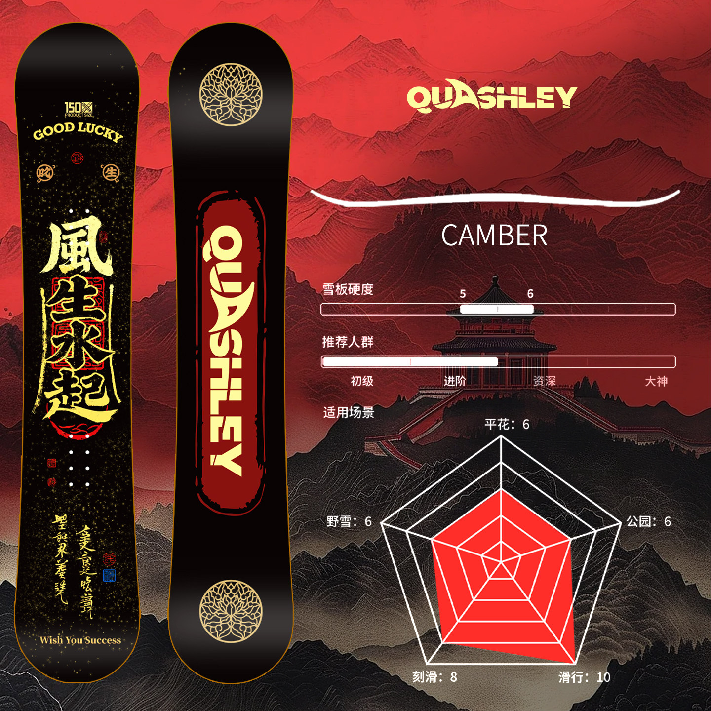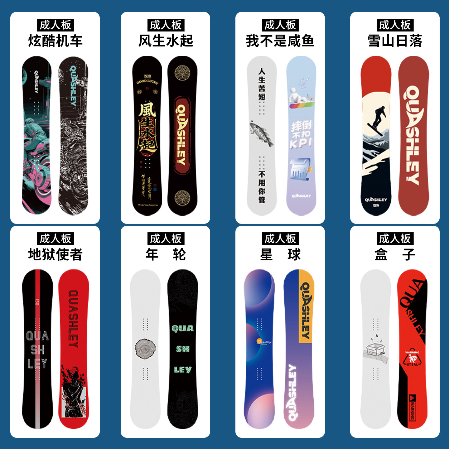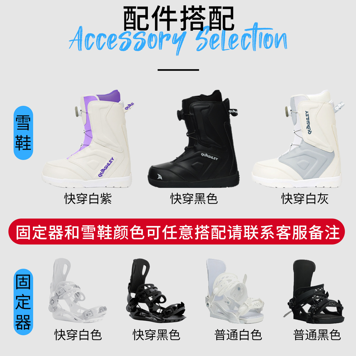 Quashley滑雪板单板小黑板全能滑雪板固定器雪鞋滑雪装备套装全套