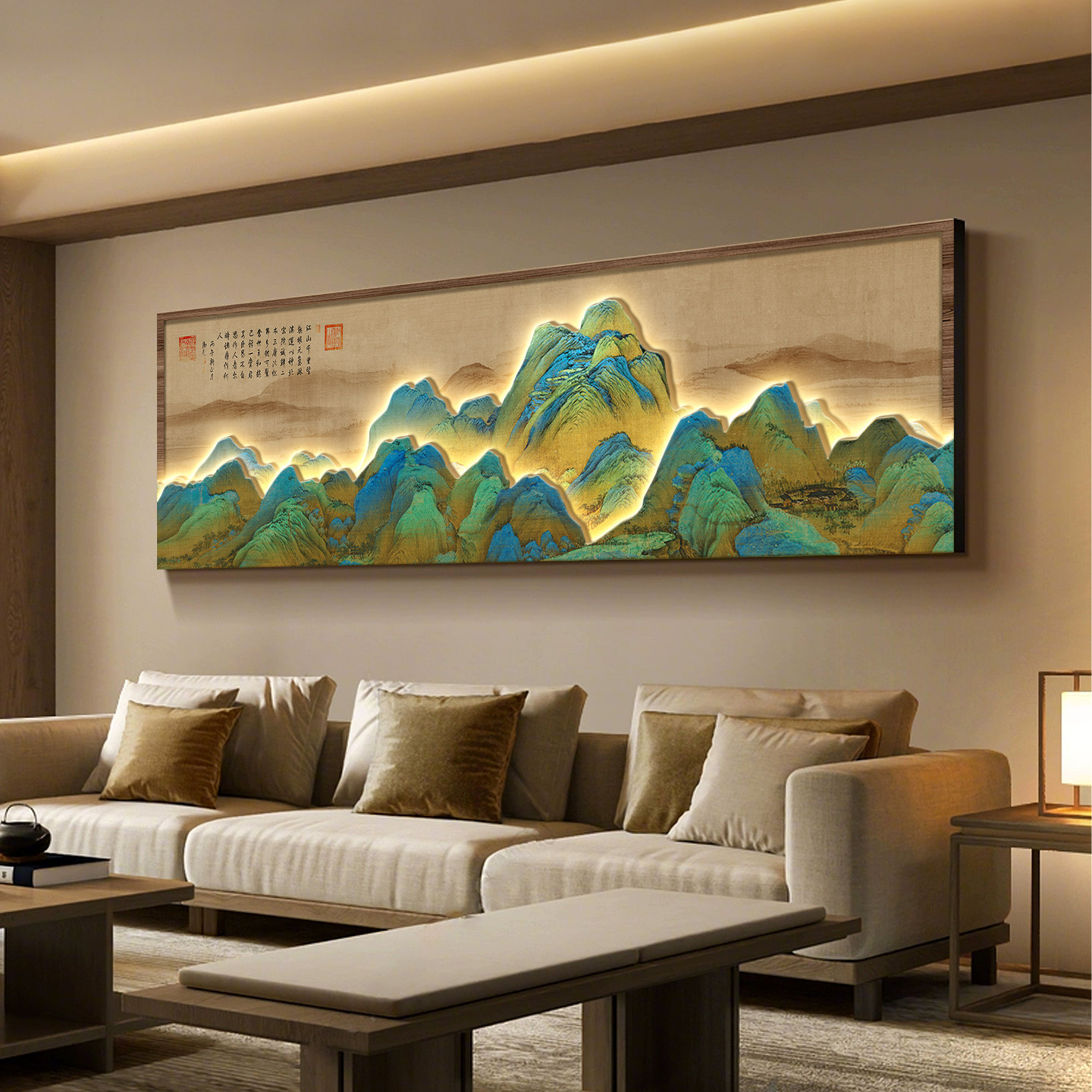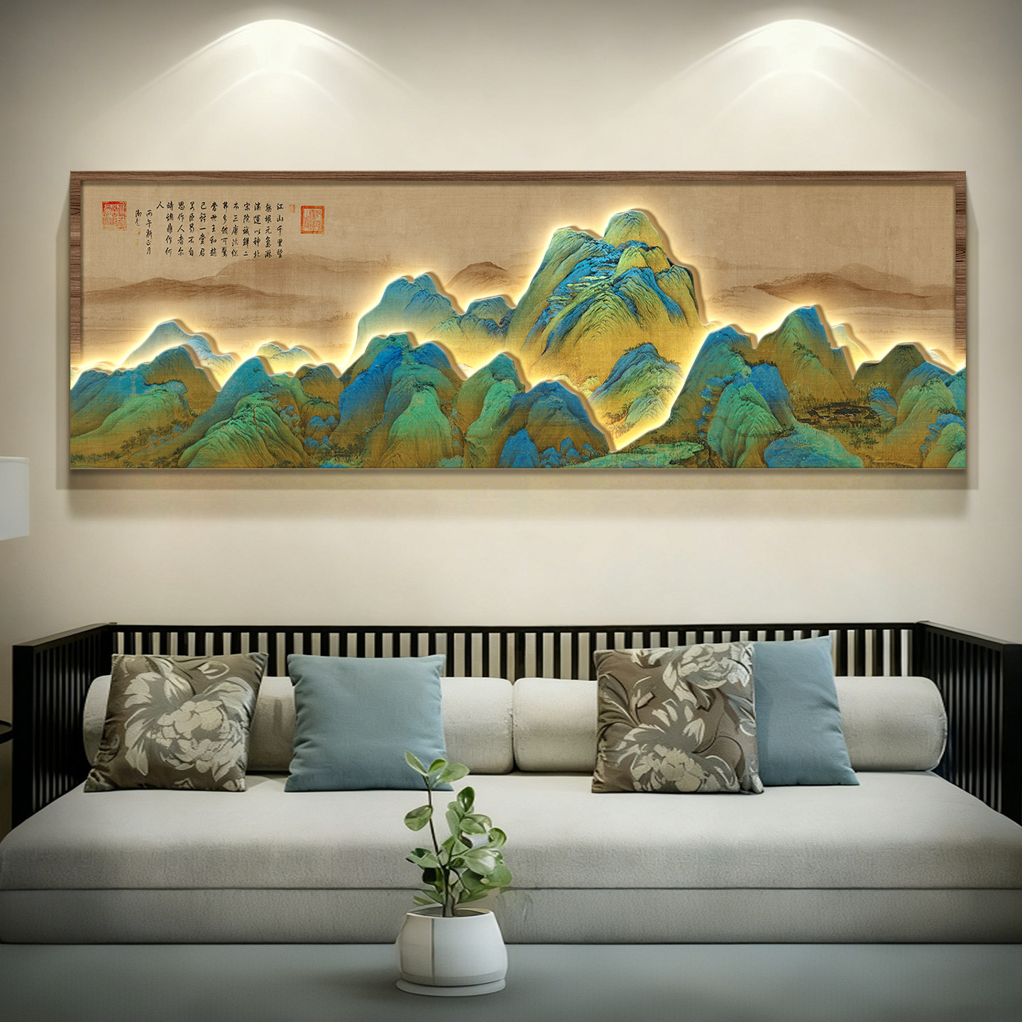 千里江山图客厅挂画新中式山水沙发背景墙装饰画宋代美学茶室壁画
