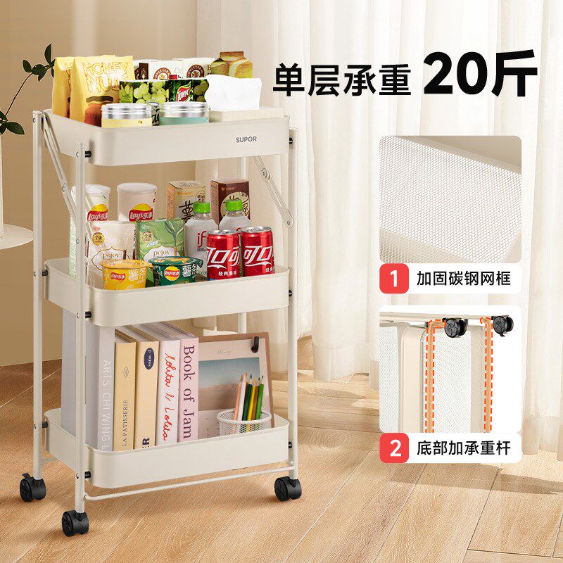 小推车置物架落地卧室厨房客厅零食多层带M轮可移动收纳储物架子