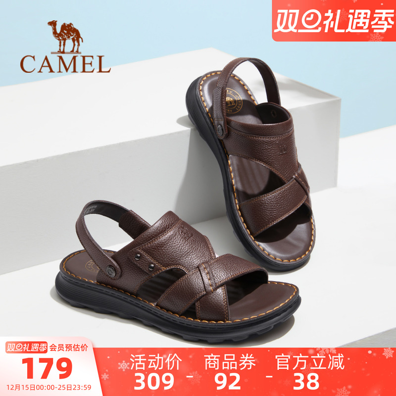 骆驼男鞋凉鞋2025夏季新款真皮商务男士凉拖鞋两穿透气爸爸沙滩鞋