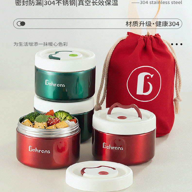 【送保温袋】贝伦斯 祖母绿/宝石红饭盒(620ml+620ml)+红布袋