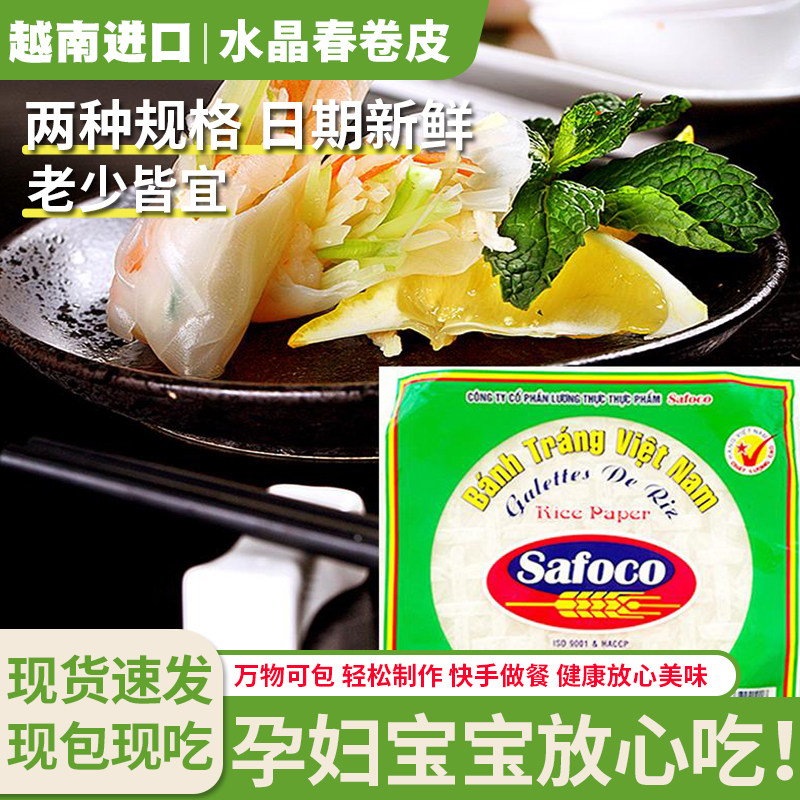 推荐理由:越南进口超薄Safoco春卷皮米纸炸春卷薄款透明水晶春饼皮200g家庭