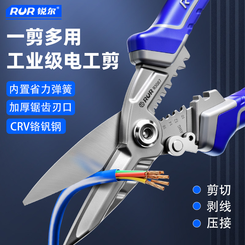 推荐理由:锐尔电工剪剥线钳多功能铁皮剪轻钢龙骨强力不锈钢剪铝扣板用剪子
