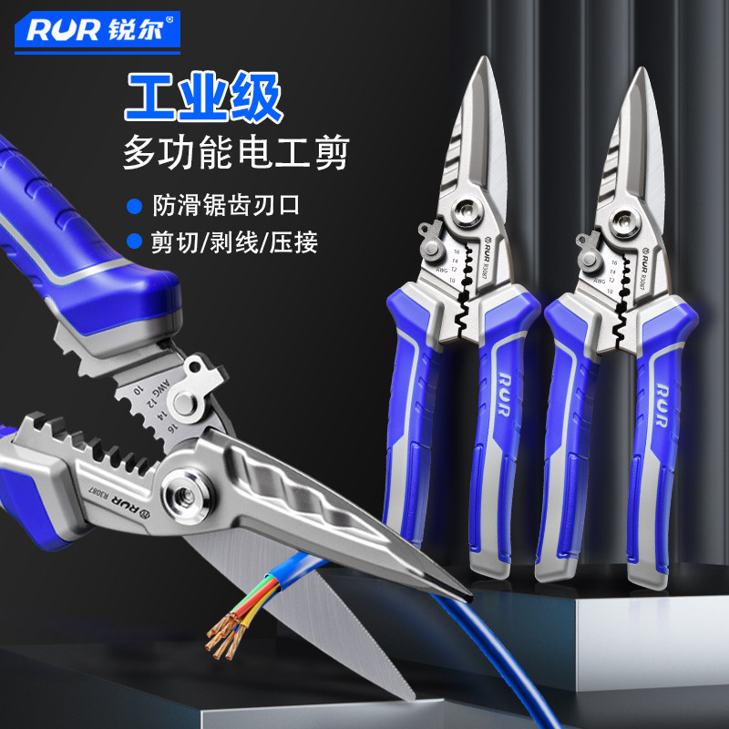 锐尔电工剪剥线钳多功能铁皮剪轻钢龙骨强力不锈钢剪铝扣板用剪子