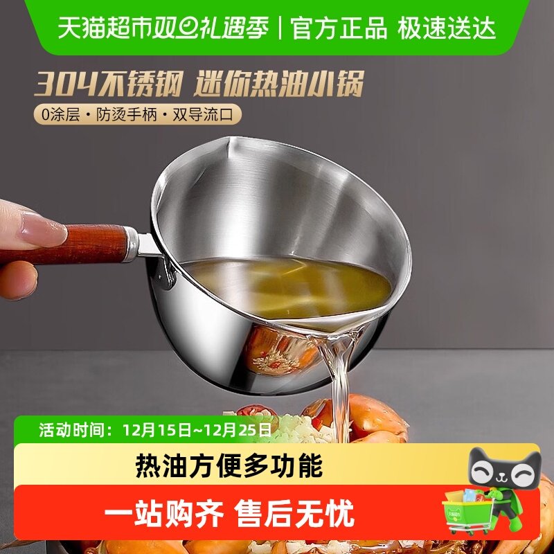 HZIB/赫巴兹304不锈钢热油小锅家用加长装油防烫手加厚