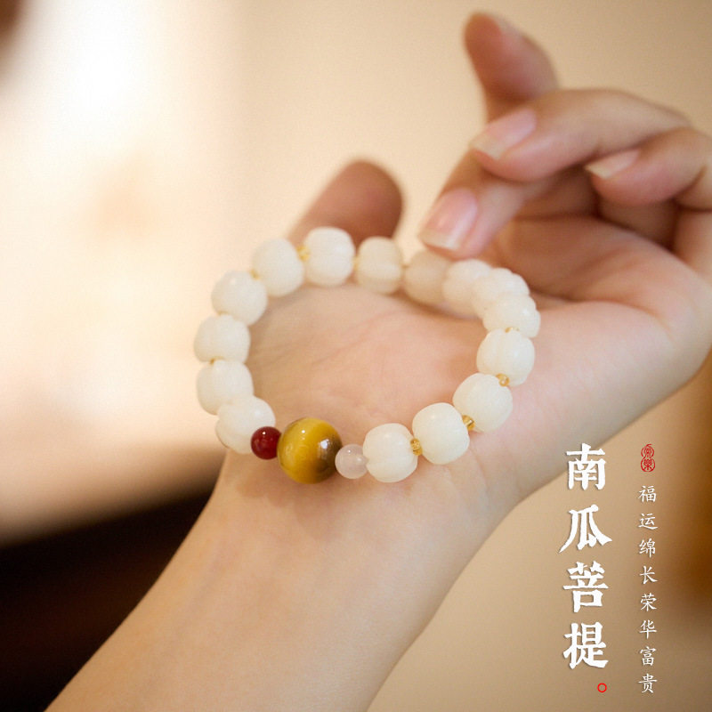 XKDDCT寺庙同款天然白玉手串虎眼石菩提南瓜手串绕指柔国风手链小