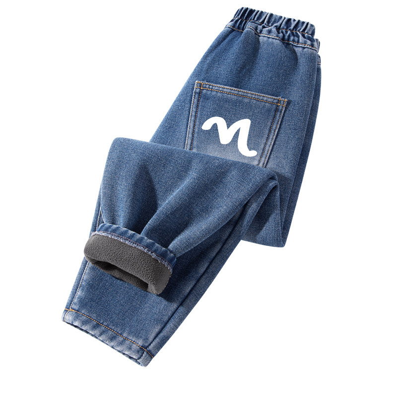 真维斯男童加绒裤子加厚2025新款男孩冬季休闲裤保暖儿童牛仔裤