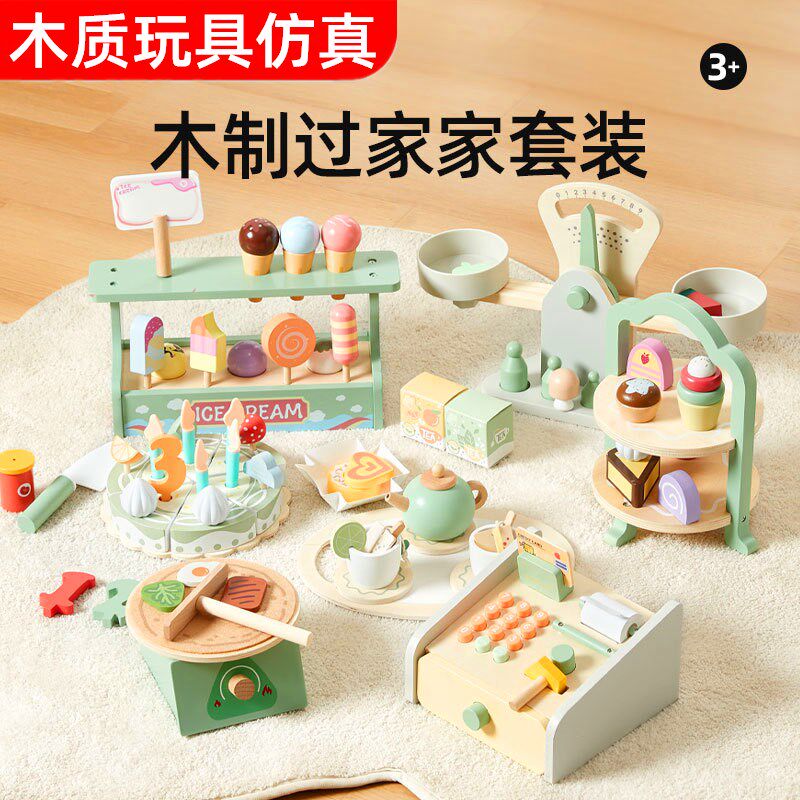 木制玩具木质汉堡摊饼机蛋糕套装男女儿童过家家生日礼物实木玩具
