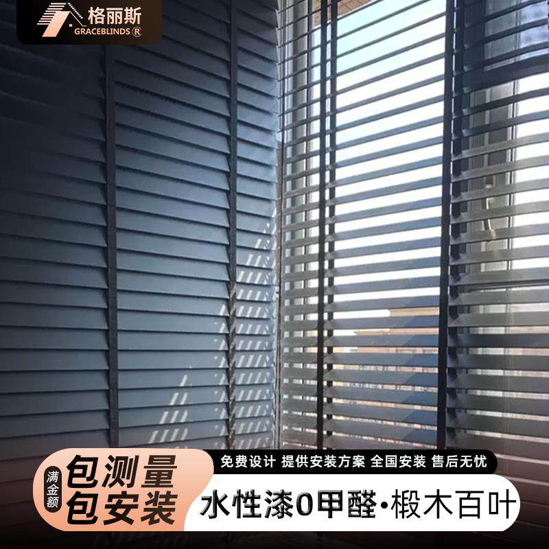 黑色实木百叶窗帘书房客厅办公室卧室饭厅遮阳遮光木质帘电动升降