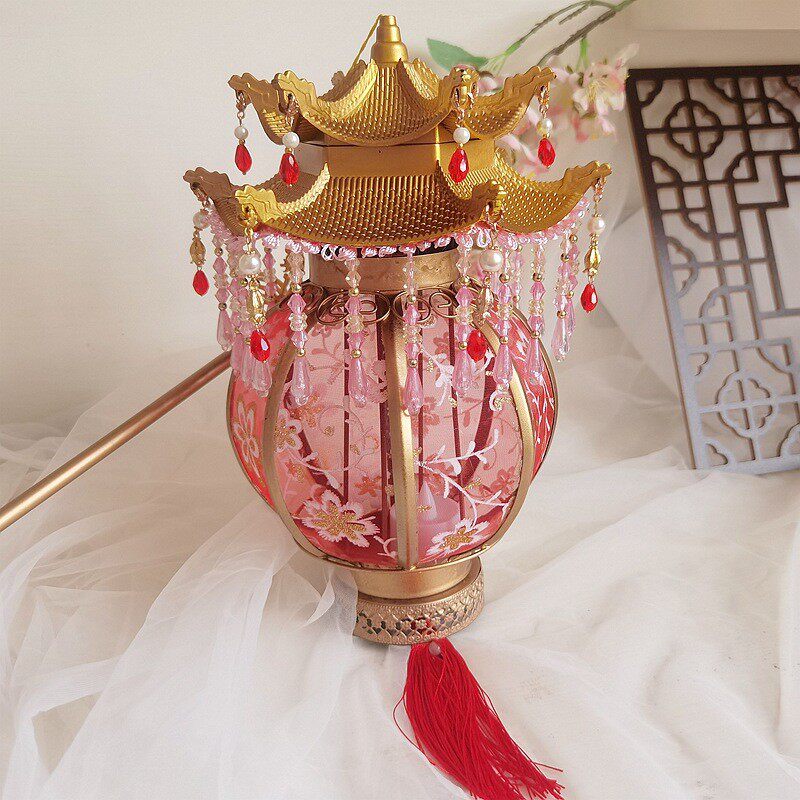 复古风圆形手工手提手持花灯汉服宫廷舞蹈灯笼中国风发光成品