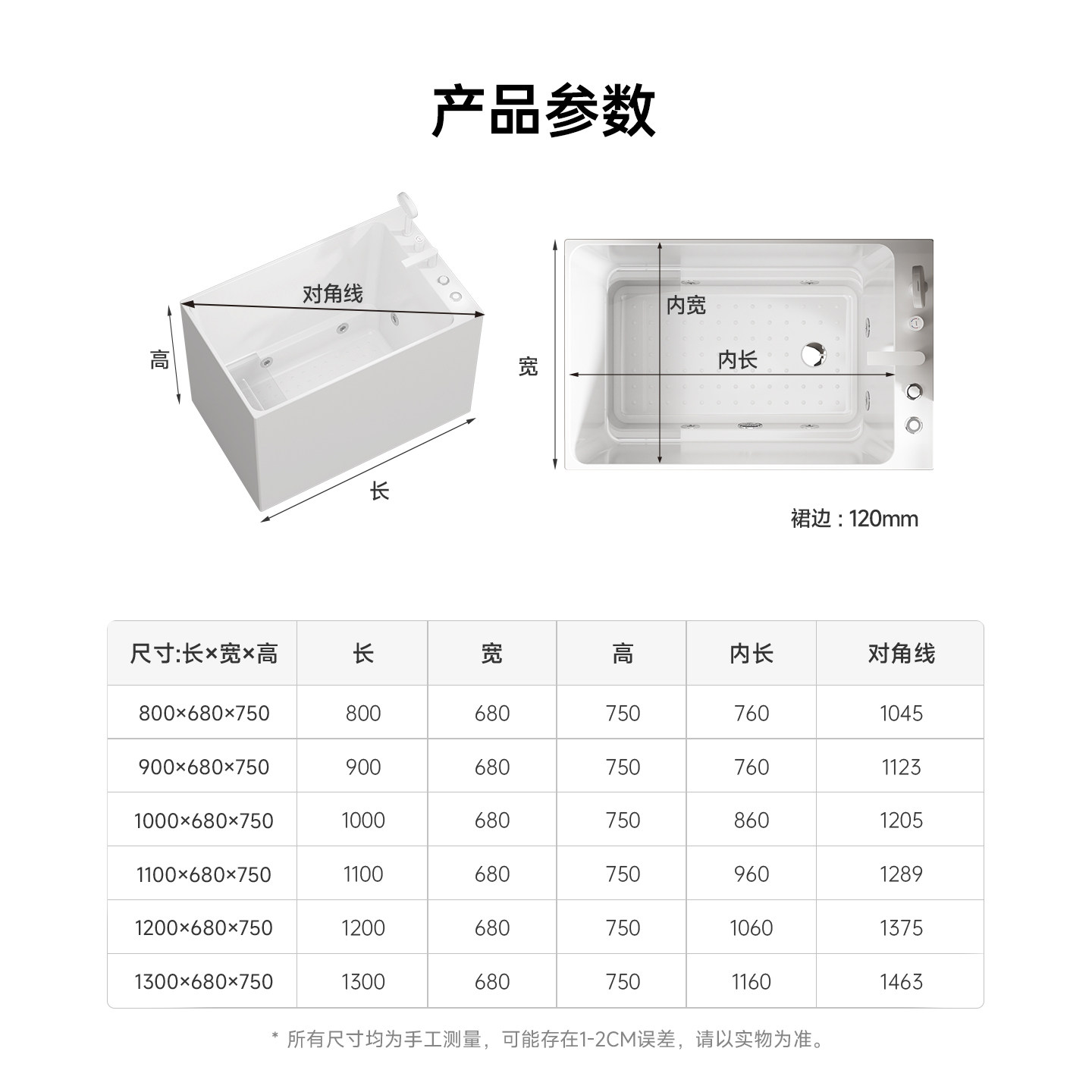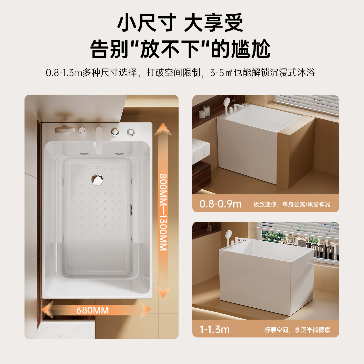 推荐理由:浪鲸67cm超深泡浴缸家用小户型亚克力方形浴缸卫生间独立按摩630