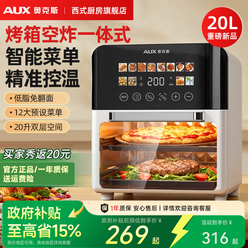 奥克斯空气炸锅大容量小型多功能2025新款电烤箱家用微波炉一体机