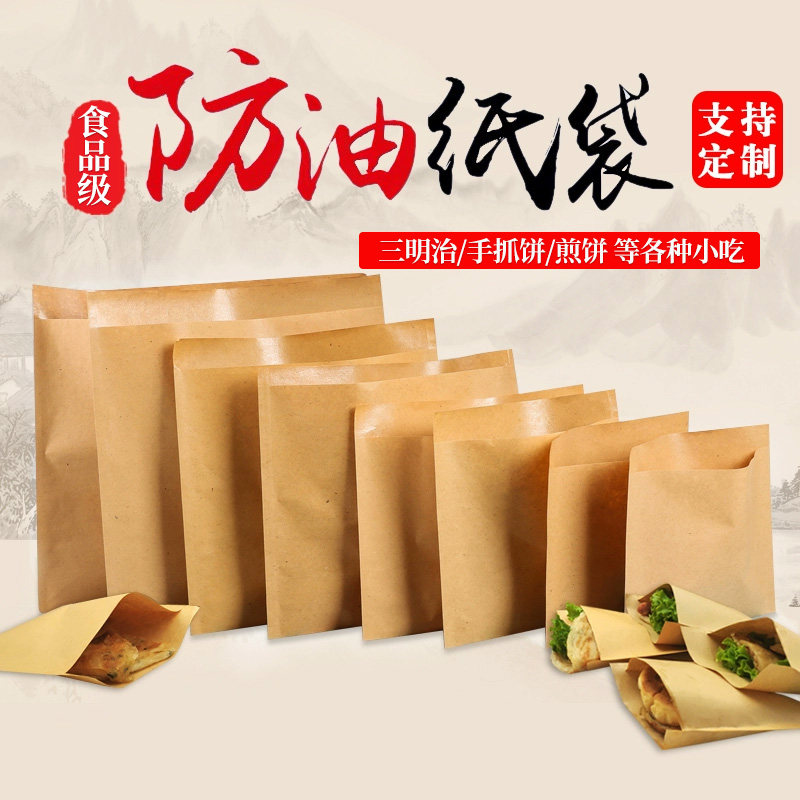牛皮纸袋食品包装一次性打包烧饼手抓煎饼肉夹馍烧烤小吃防油定制