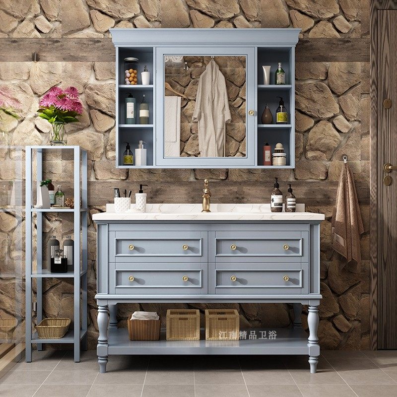 北欧轻奢美式橡木浴室柜智能镜柜落地洗脸盆K洗手盆洗漱台盆柜A03